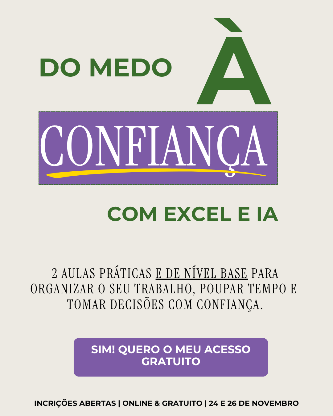 Estas aulas forma pensadas para as pessoas que precisam de Excel no seu dia a dia apenas para as tarefas mais básicas. E como não podia deixar de ser como podem aos poucos começar a usar a IA no seu dia a dia e no seu negócio. Conto consigo?